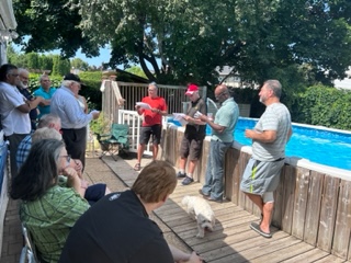 This year, “Floating of the Ark”, the 2023 mid-summer social event for Britannia Bay Lodge No. 12, Royal Ark Mariners, was held on Sunday, July 23, a beautiful warm sunny afternoon, at the Ottawa home of Thrice Illustrious Companion Khalil Ibrahim. Members present included M. Ill. Comp. Prince Selvaraj, R. Ill. Comp. Sam Kalinowsky, V. Ill. Companions Les Richardson and Michel Vigeant, T. Ill. Companions Khalil Ibrahim and Andrew Ciastek, Ill. Companions Robert Dupel and Max Anglade, and Comp. Mike Boese. A number of friends and ladies also attended.